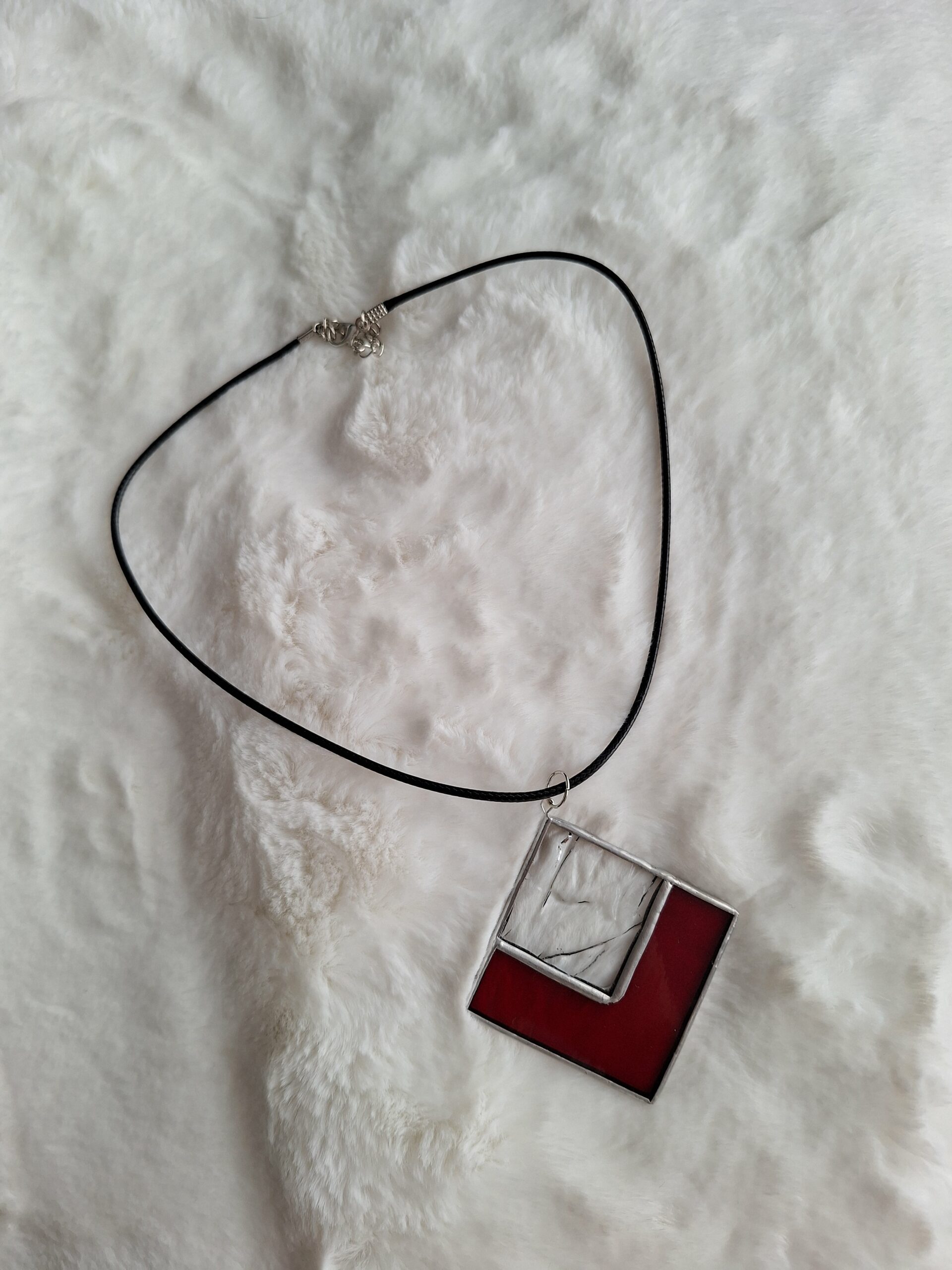 Collier carré rouge et transparent