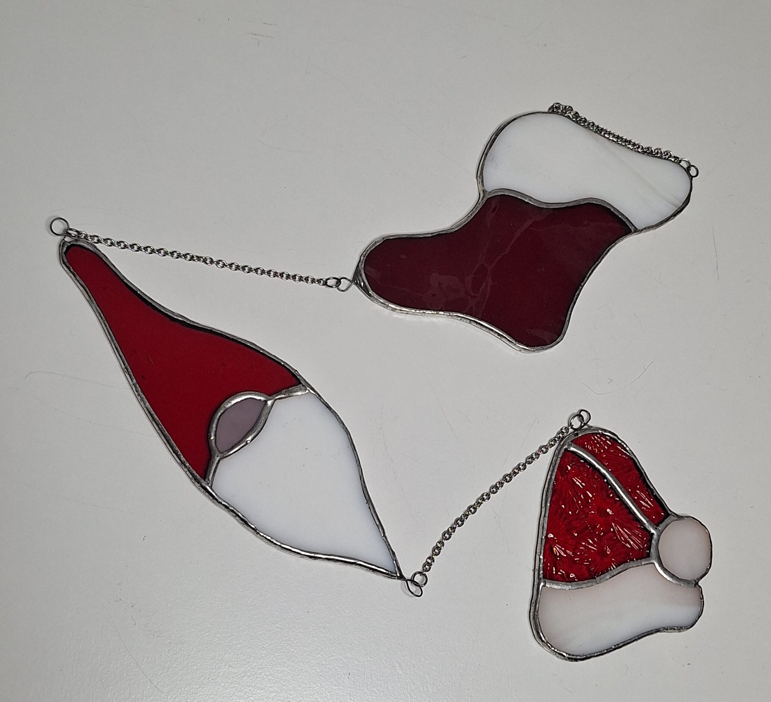 Décoration de Noël réalisée suivant la méthode Tiffany Cette suspension est réalisée avec différent verre, texturé, vif , opalescent Le style est à la fois festif et délicat Idéal pur une fenêtre